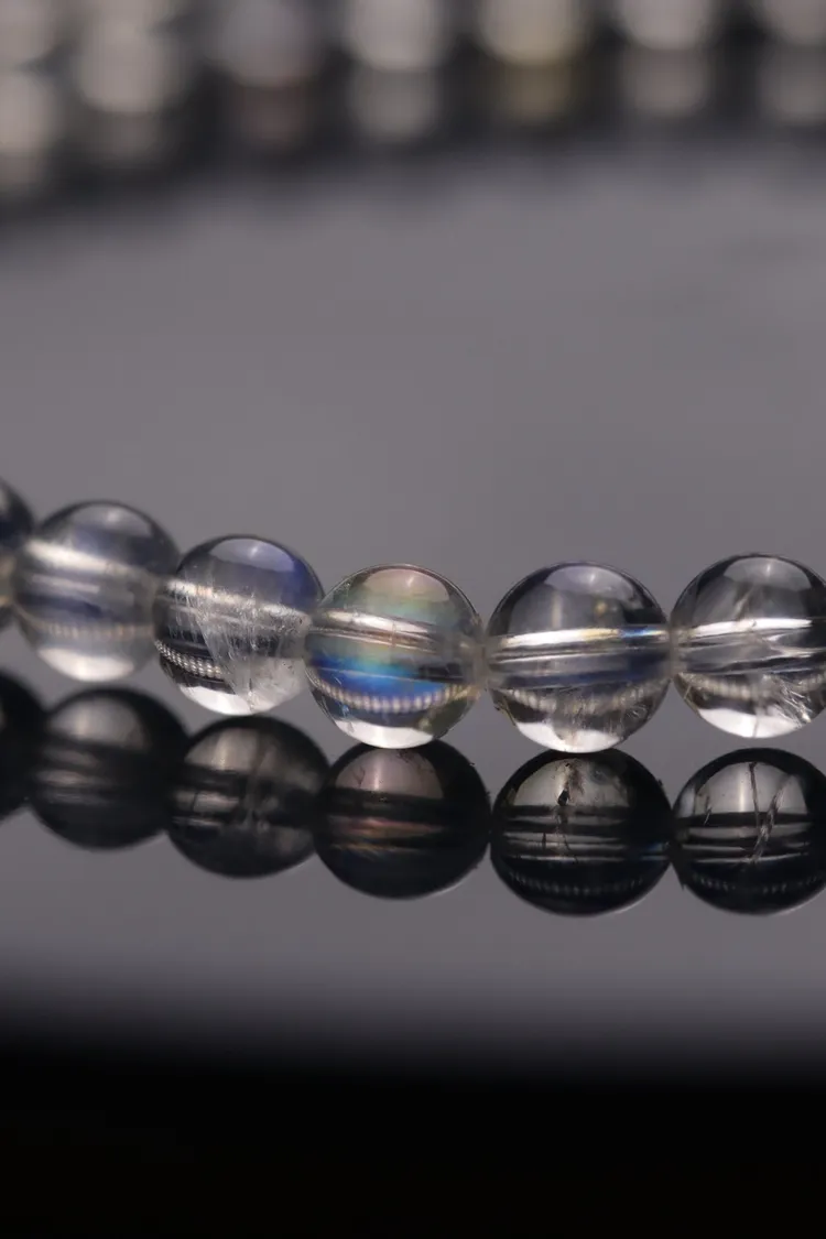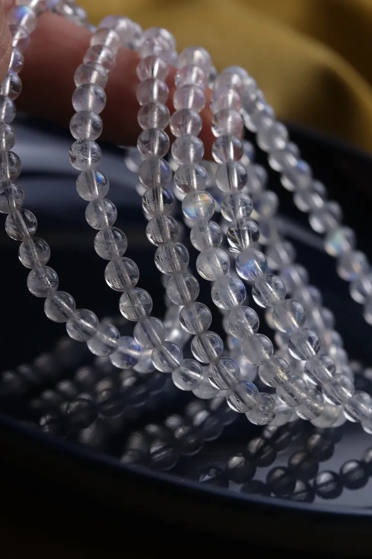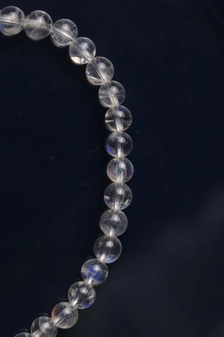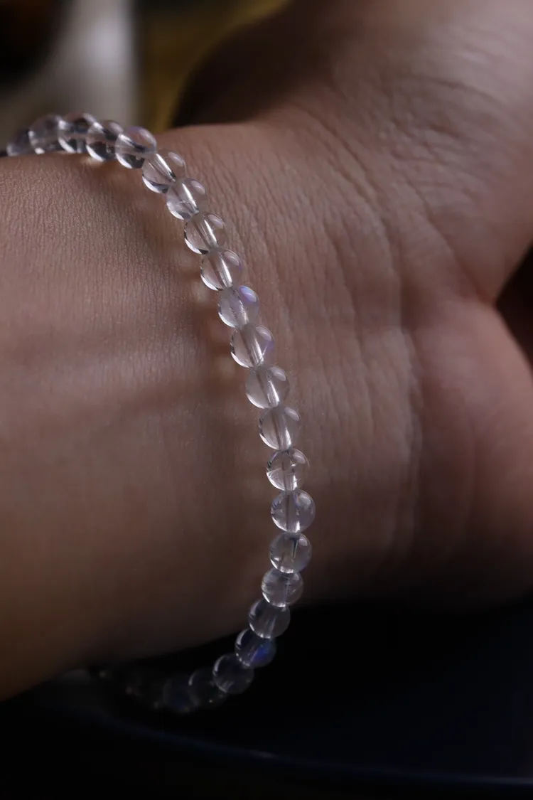 這篇推薦給大家的是近淨體的印度月光石,每串都能清楚的觀察到一些彩虹的光暈,因為顆粒小的關係有著相當有珠寶感的透度,迷你又純淨的透白色相當適合跟各種手鍊首飾疊戴。