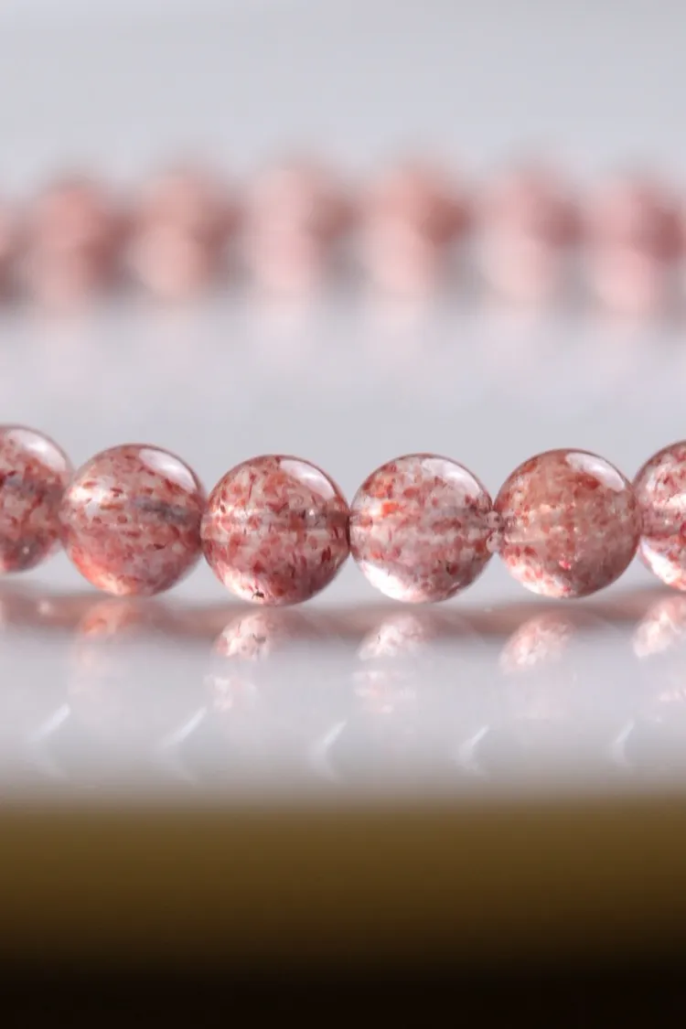 非常清透的白水體草莓晶,紅點很明顯,透體會帶粉色調。