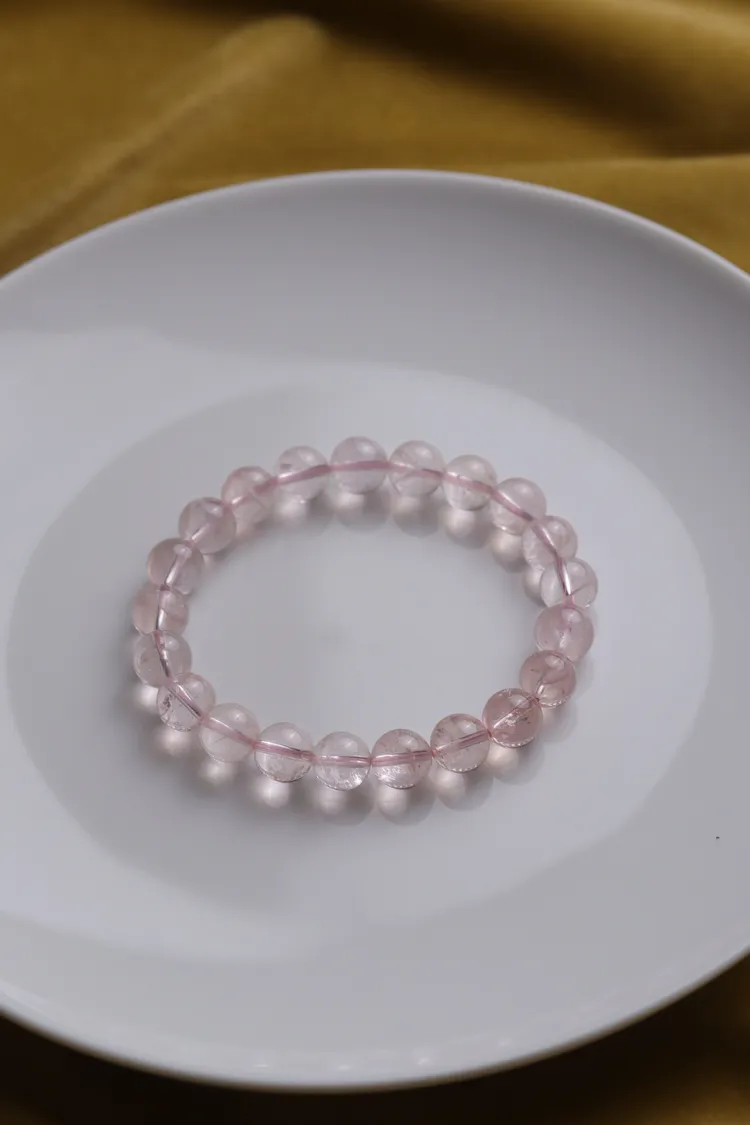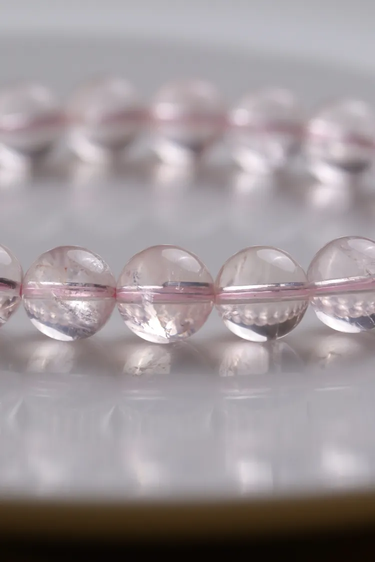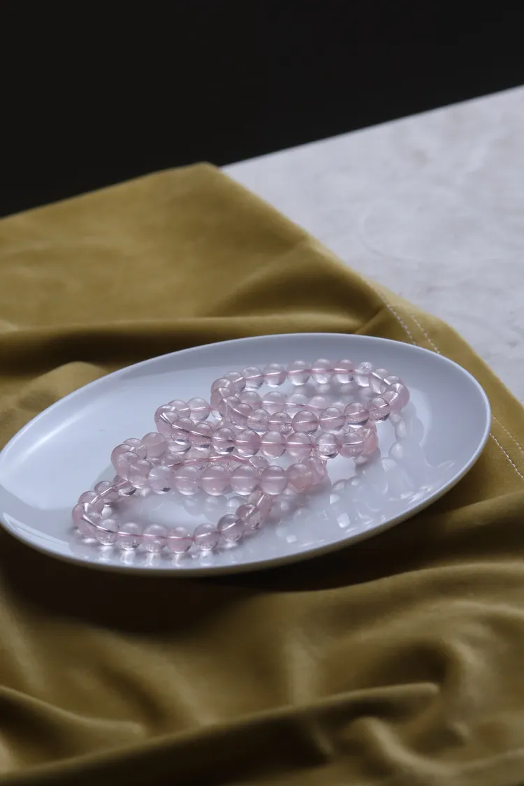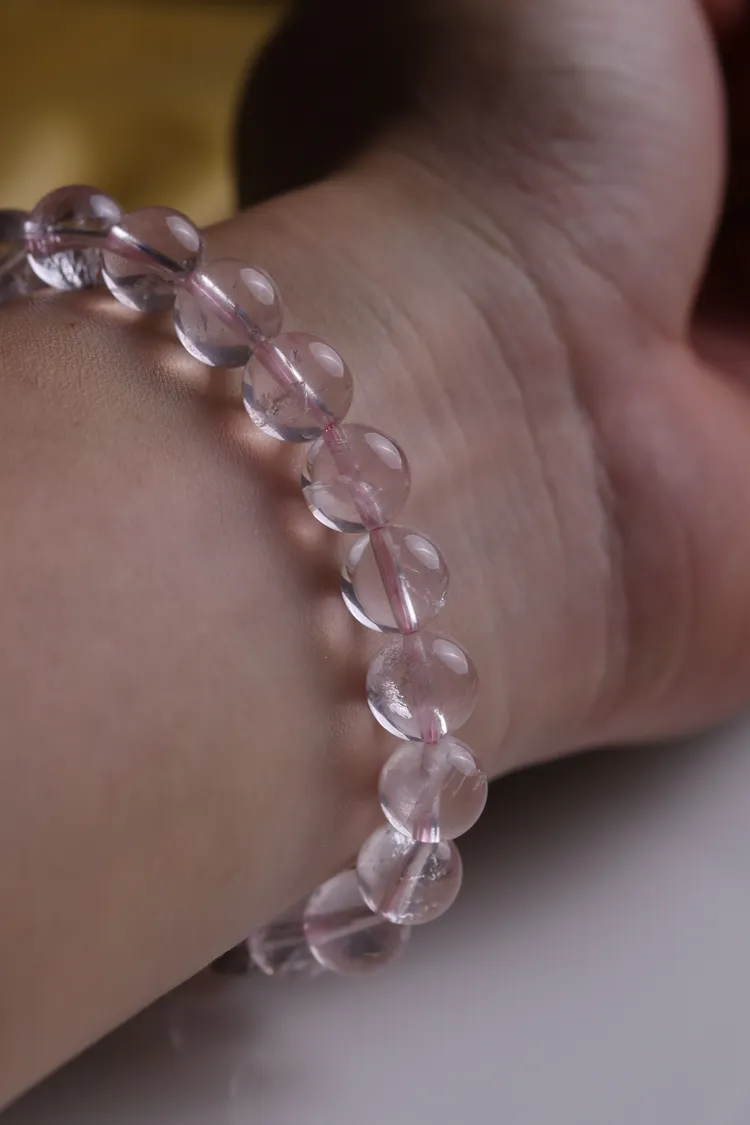 顏色有點粉橘色的感覺,晶體非常玻璃感不會帶霧,冰裂會有一點閃閃的感覺,內圖有一張換成透明線的比較,相差不大