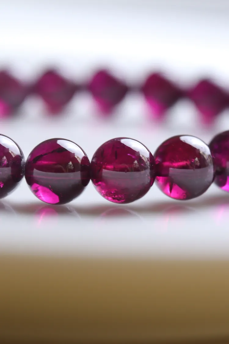 晶體不是全淨,8mm以下的顏色會比較鮮豔,以上的大小比較偏莓紅色。