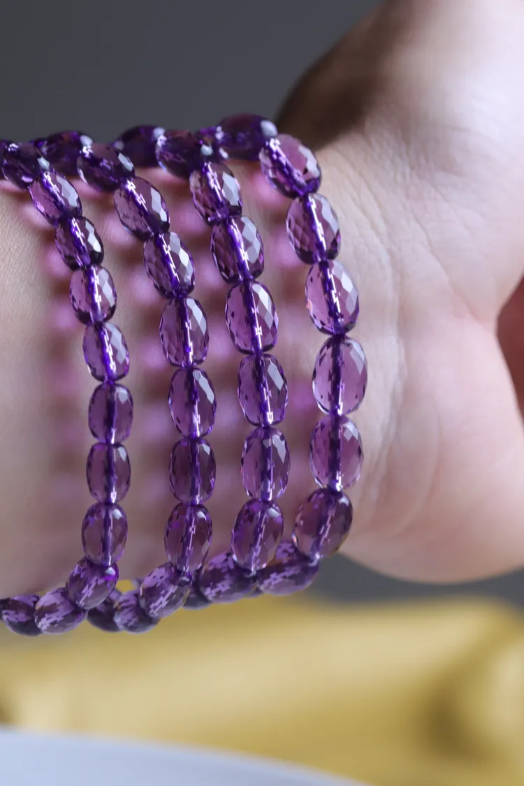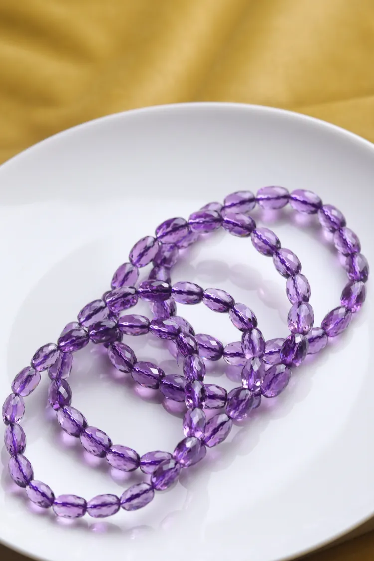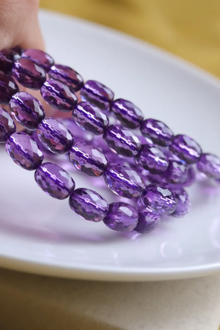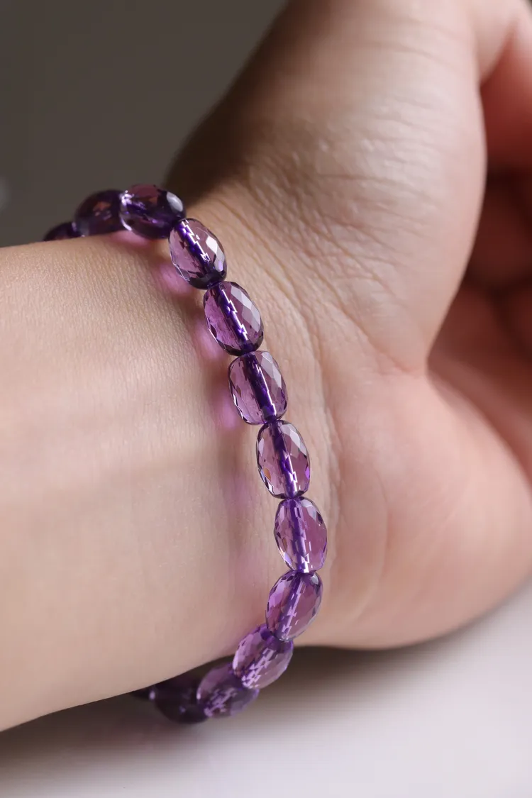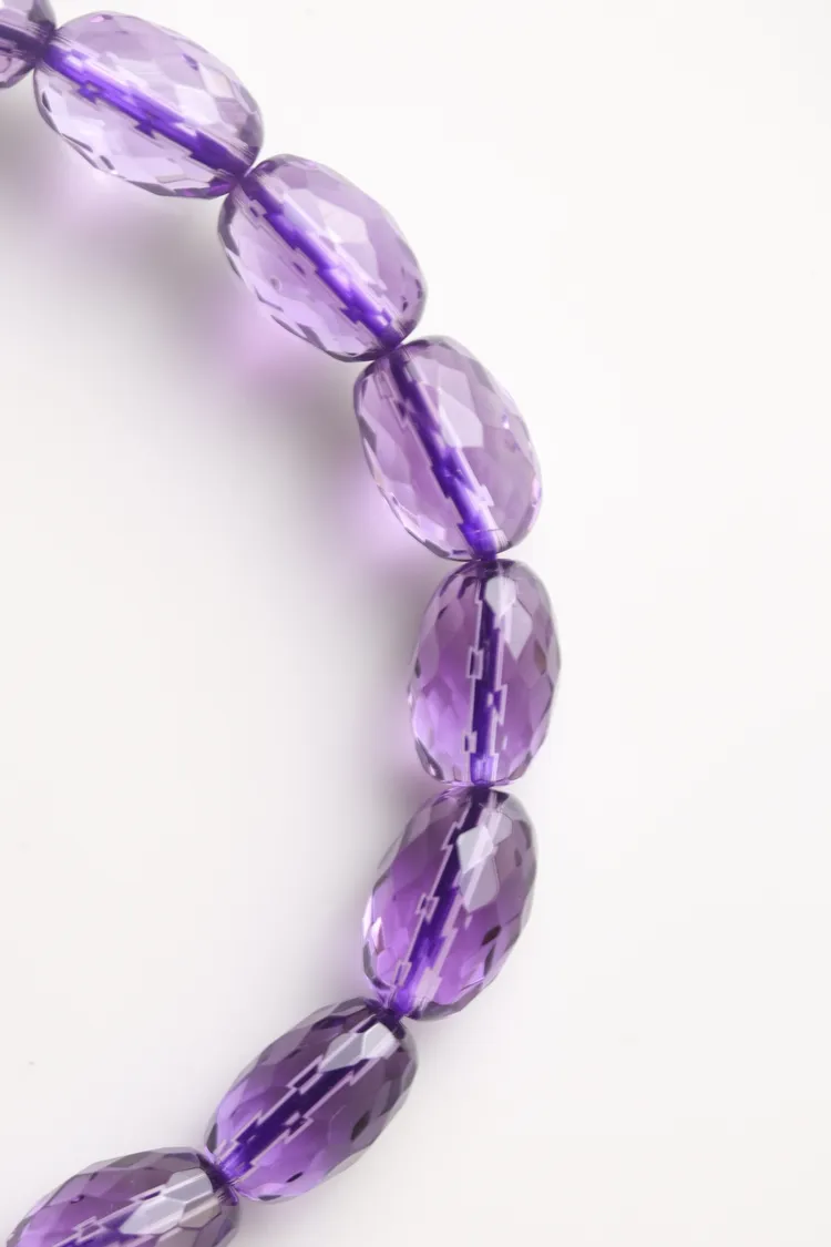 帶有些微紫色漸層的玻璃體巴西紫水晶,鑽切後相當高雅閃亮。