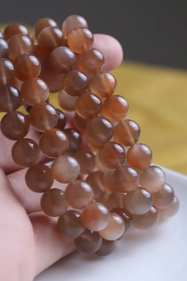 少見的彩月光,橙色帶灰黑色的漸層,帶閃片,橙色部分會有點偏紅,是很特殊的彩月光。