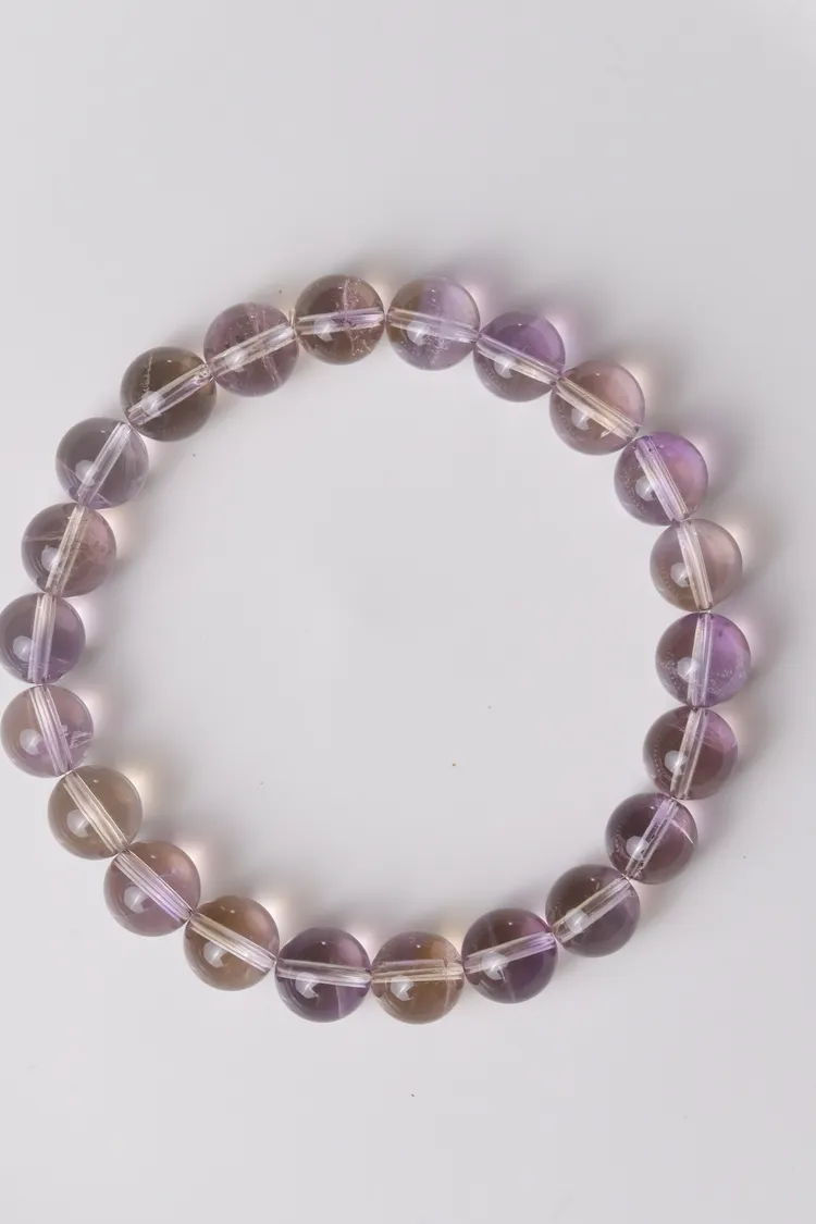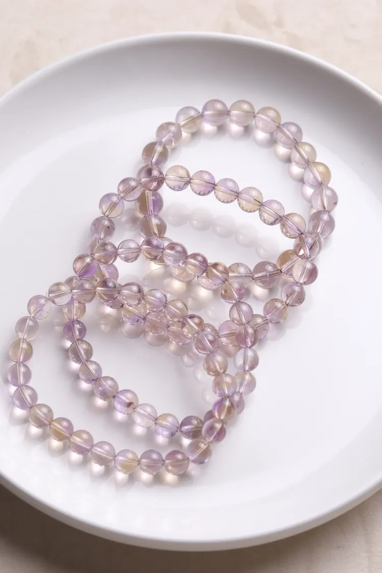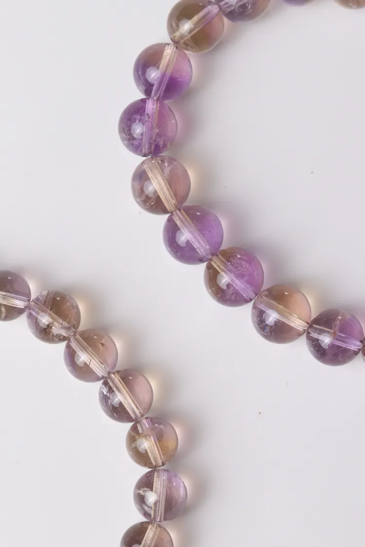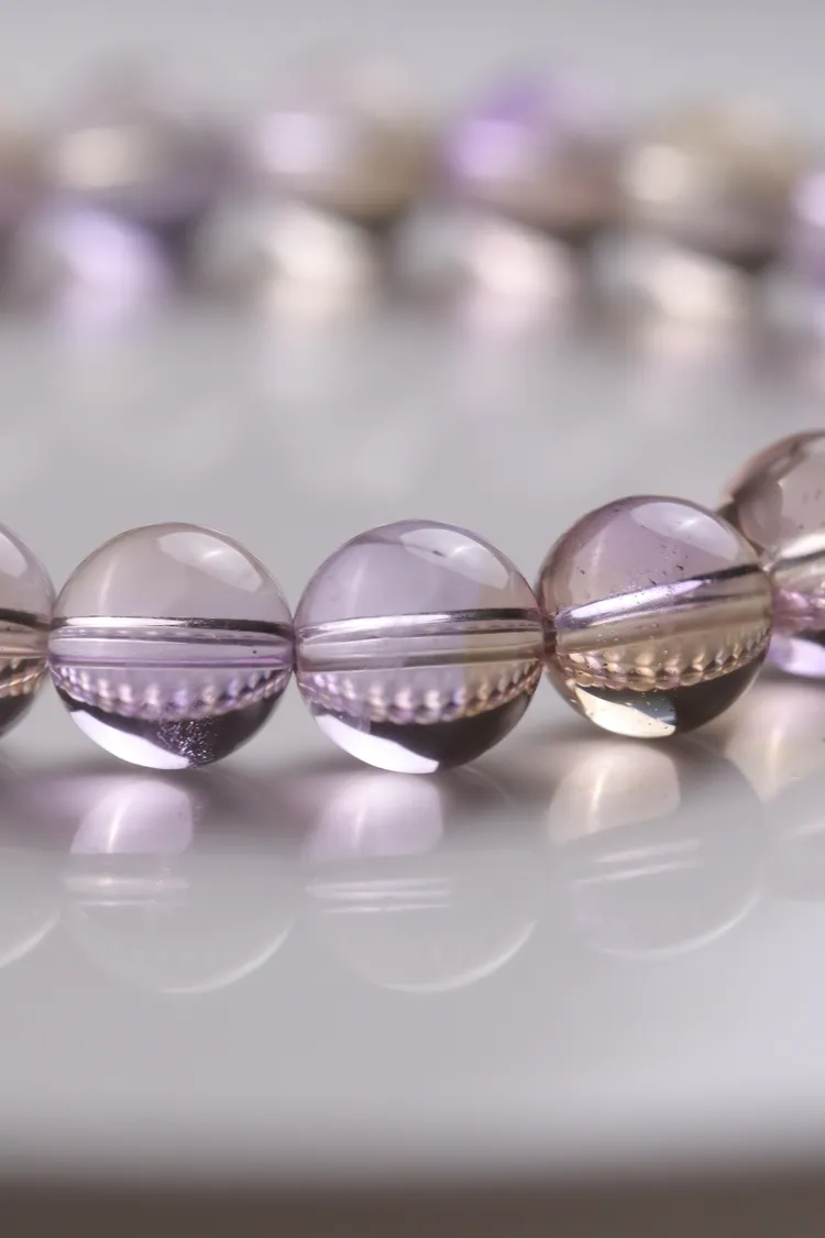 晶體很好的紫黃晶,是兩種顏色在同一顆珠子裡的紫黃,顏色會比較淡,可是還是都會有雙色。