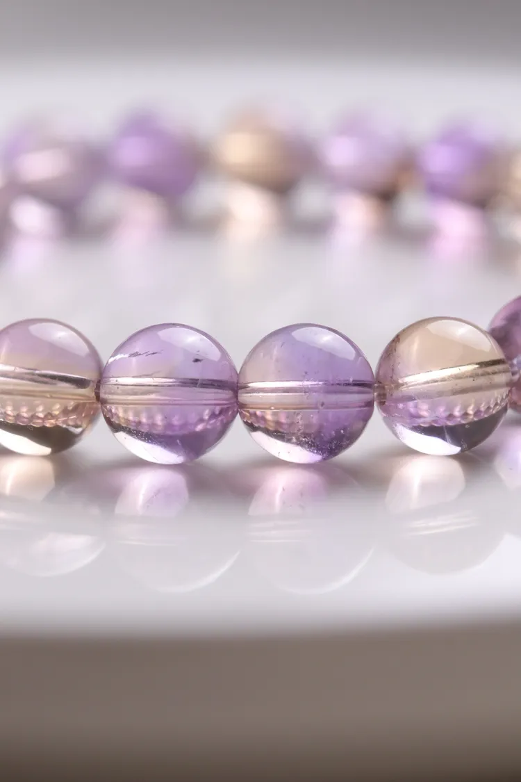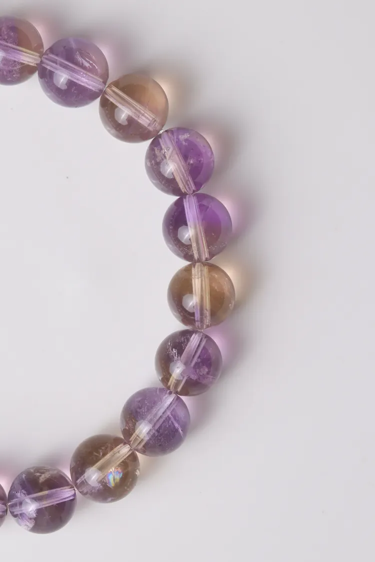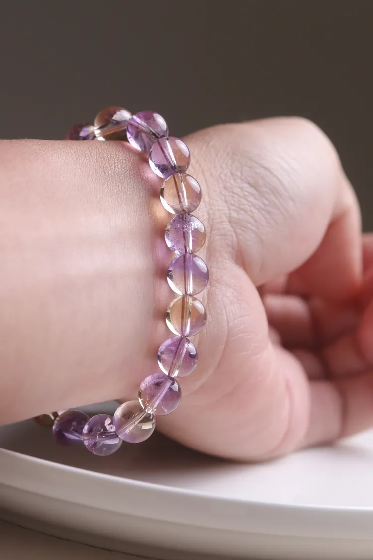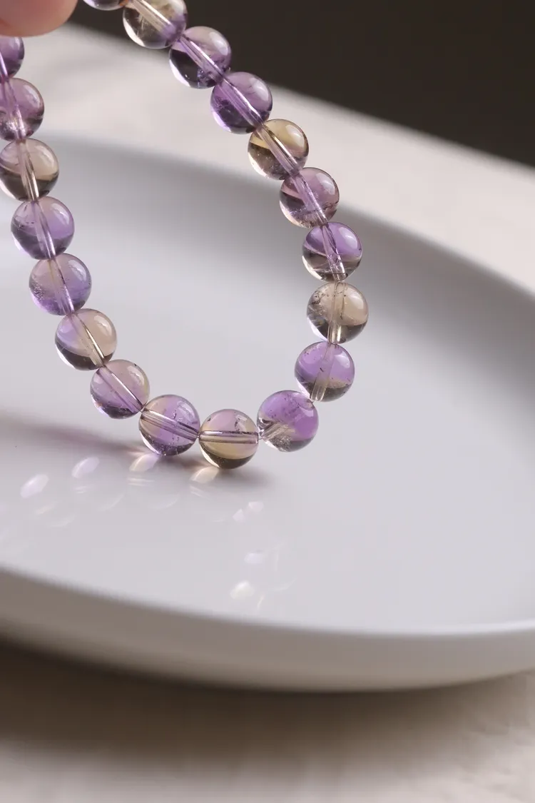 顏色紫黃晶,是兩種顏色在同一顆珠子裡的紫黃,顏色會比較淡,可是還是都會有雙色。