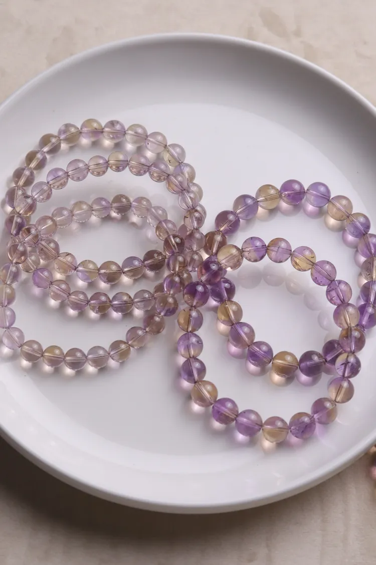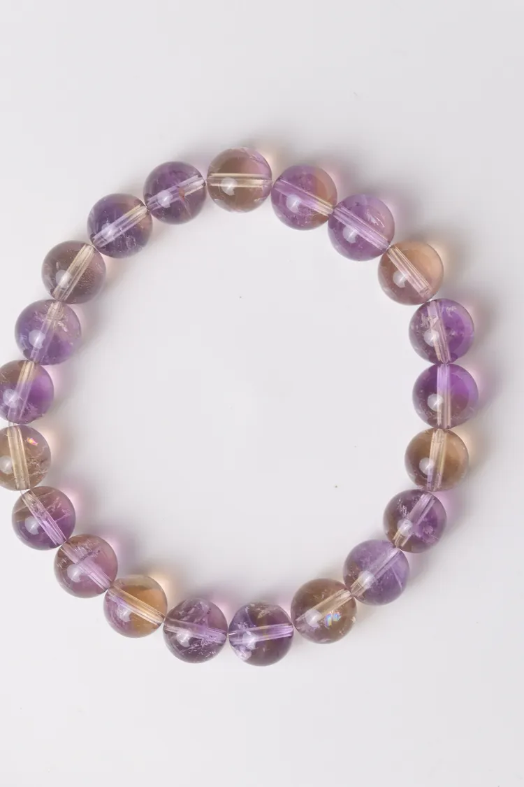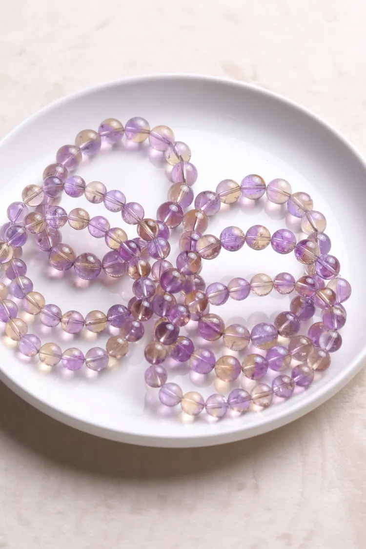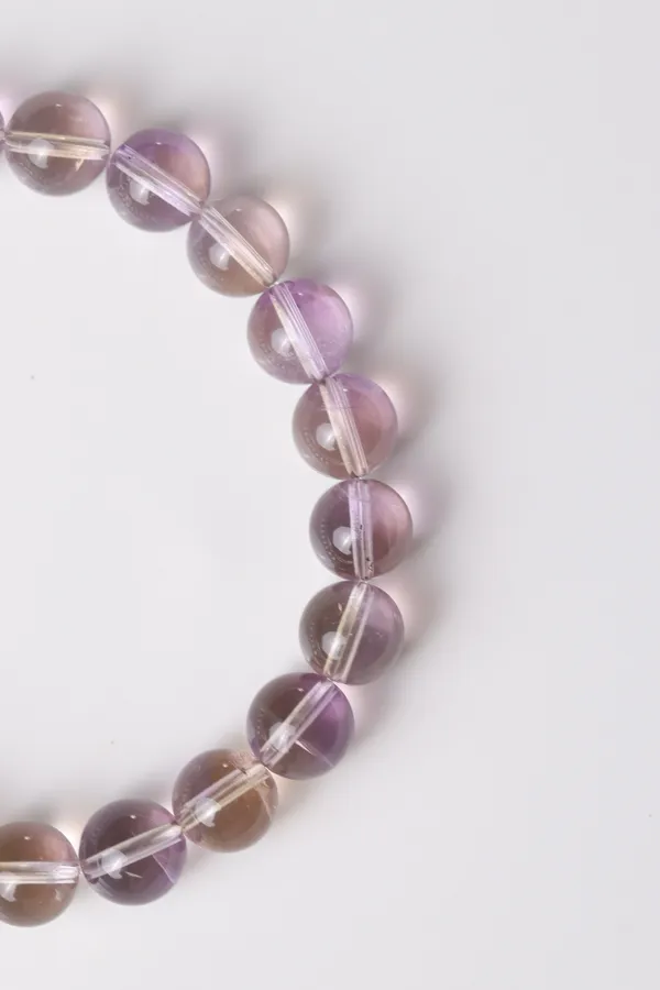 顏色紫黃晶,是兩種顏色在同一顆珠子裡的紫黃,顏色會比較淡,可是還是都會有雙色。
