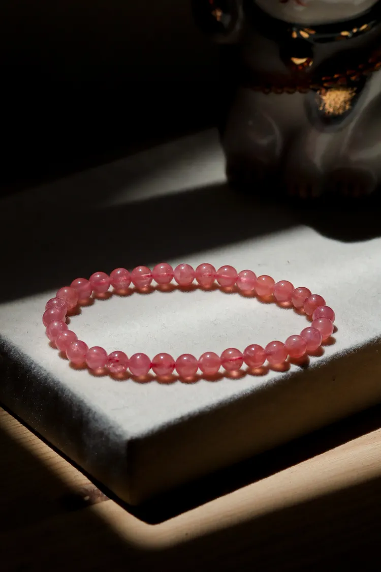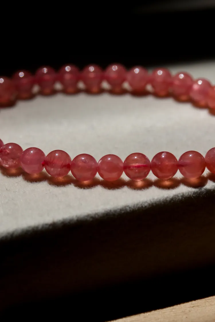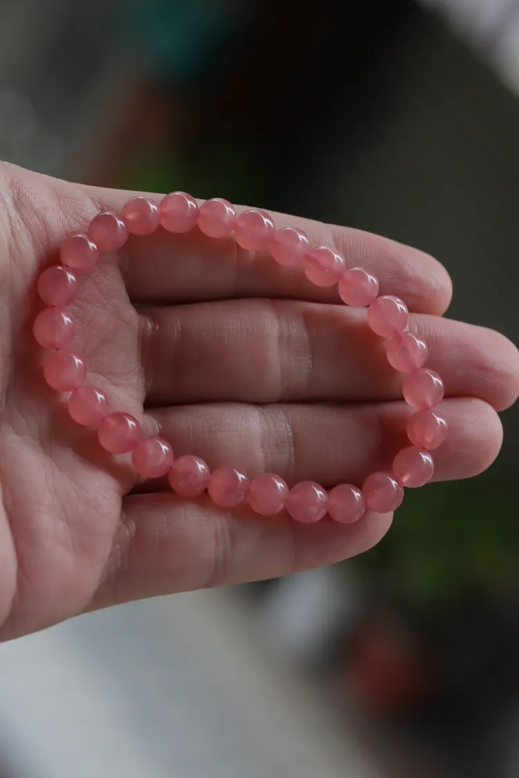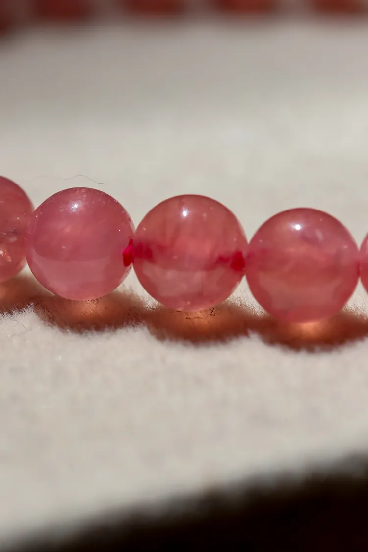 品質很好的透體滿肉紅紋石,可以透光,顏色在光源下會比較粉,低光源的話會偏紅。