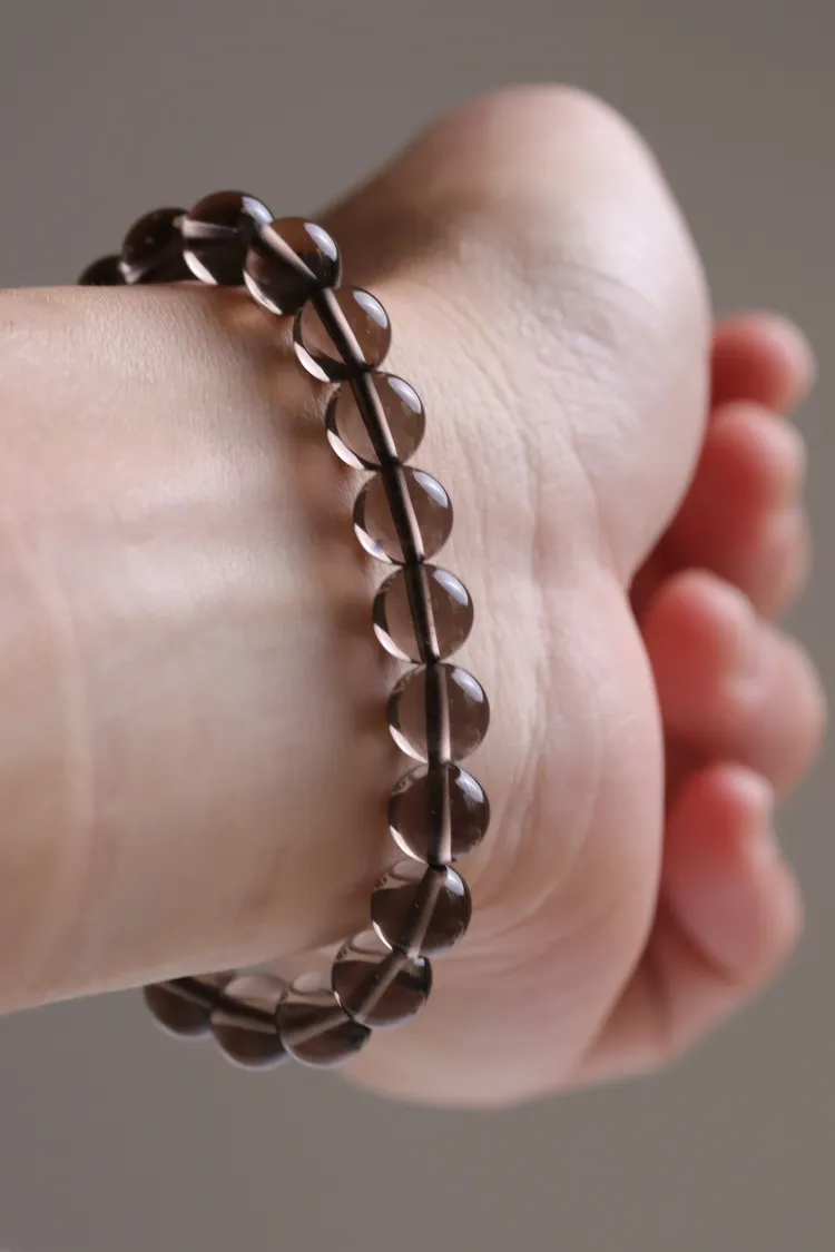 跟一般茶晶比較起來優點是顏色是天然的,茶晶的圓珠都是經過烤色的色澤居多。