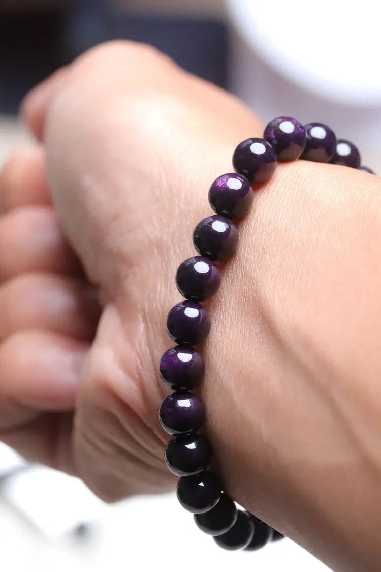 乍看是金屬般的光暗沉光澤,光源轉動下會有非常鮮豔的紫色調,很特別少見也漂亮的礦物!!