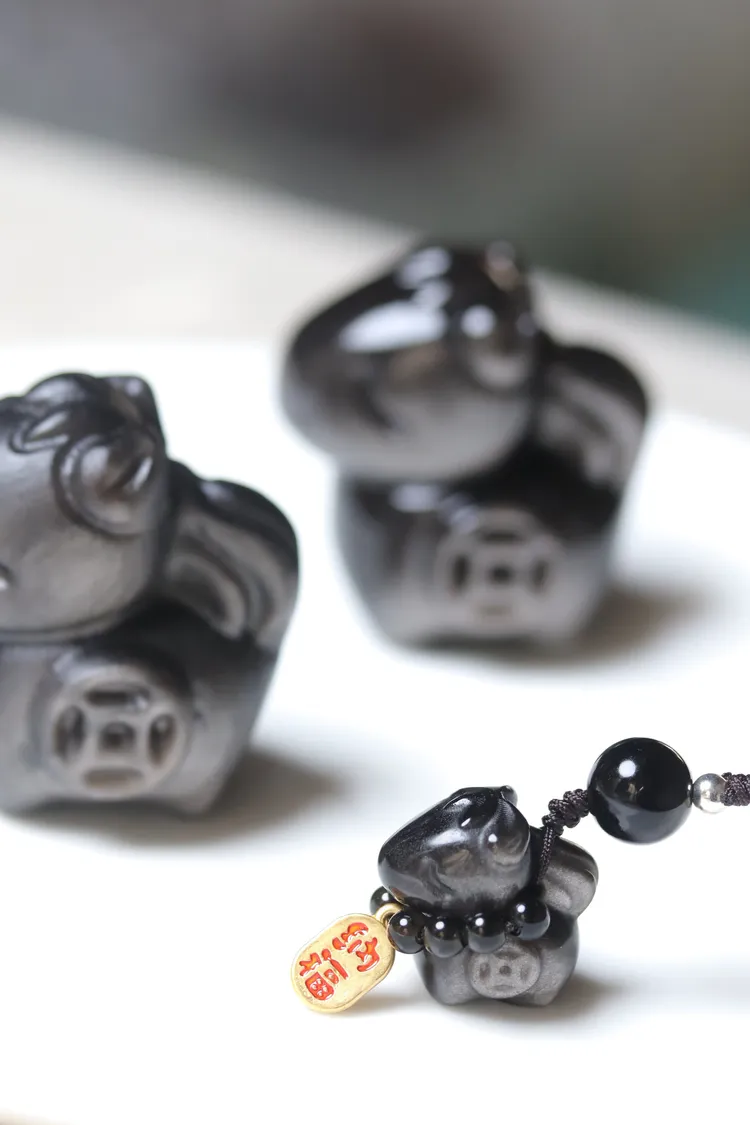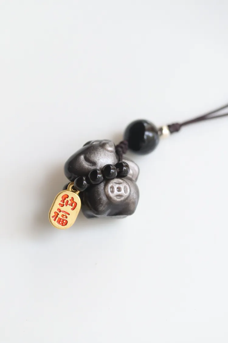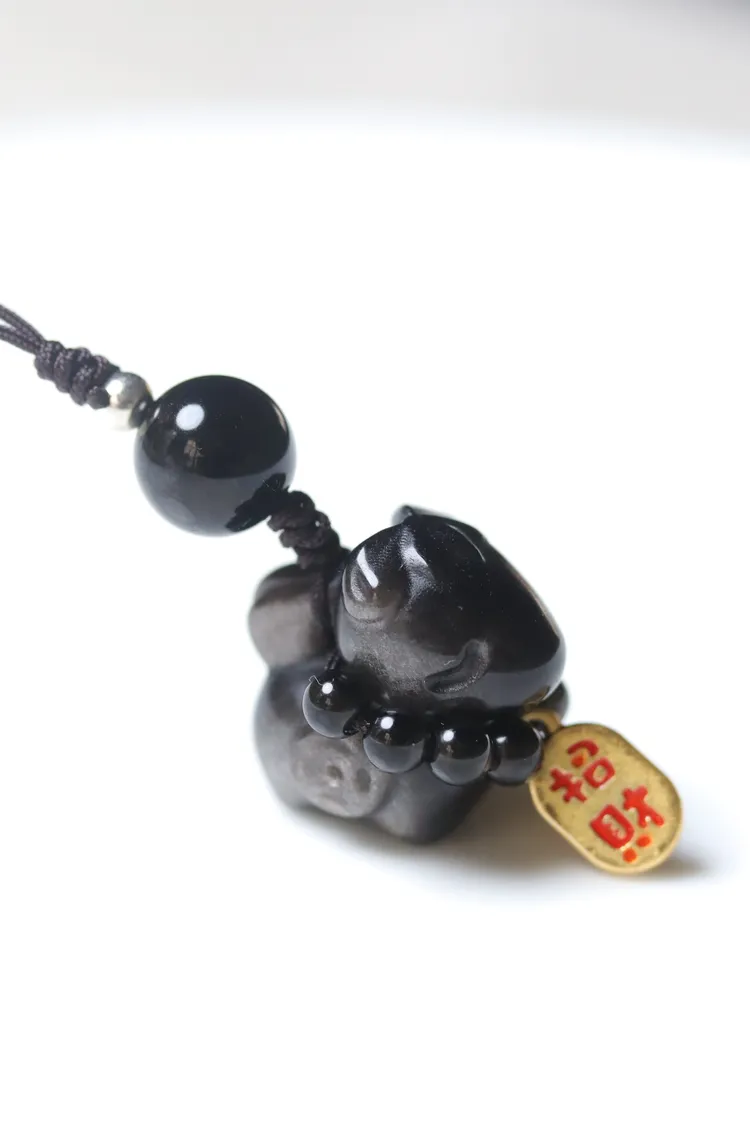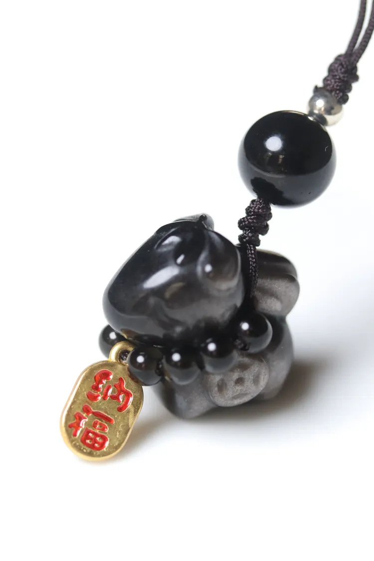 馬上有錢招財納福銀曜石小吊飾